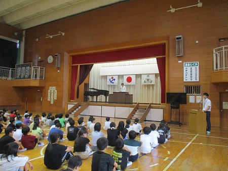 また,生徒指導担当の先生からは,夏休みを安全に過ごし,元気に2学期を迎えるために大切なこと(特に,交通事故・水の事故・お金の管理・命の大切さ)を話しました。ご家庭でお子さんにどんな話があったか聞いてみてください。そして安全に夏休みが過ごせるようよろしくお願いいたします。