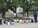 どの子も神妙な顔つきで、口をハンカチで押さえ、おしゃべりをしないで避難しました。