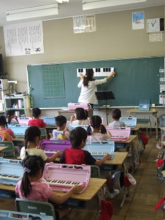 |   | 校長室の「先生あのね」可能性は 無限大 1年生がピアニカにの世界に吸い込まれました。 これから始まる音楽のピアニカの学習、今日はリコーダーの教室と同じように 専門の先生が来校し、その音色、上手なひき方等を披露してくださいました。 本当にピアニカでも、美しい音楽のしらべとして演奏できます。 まだまだ、難しいなんてことは無く1年生でも、6年生を送る会になれば、驚くほど上手に演奏する事ができます。その進歩はとても早いです。 今日の曲のように、こうなりたいという夢・目標を持って、音楽の時間を楽しみながら 一生懸命に取り組みましょう。 家でも家族に聞かせてくださいね。 可能性は無限大・・・。