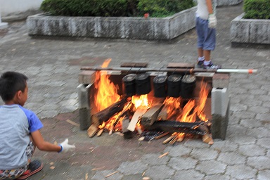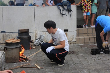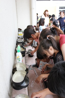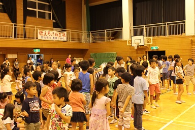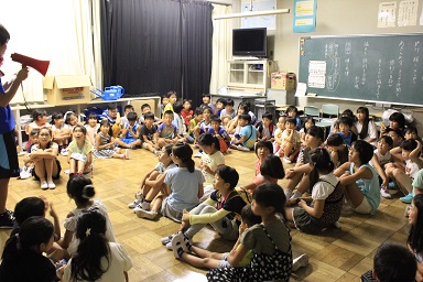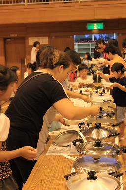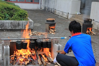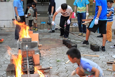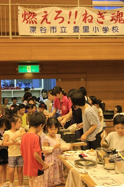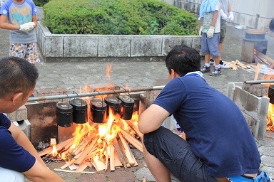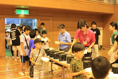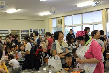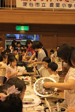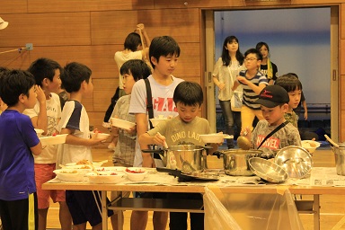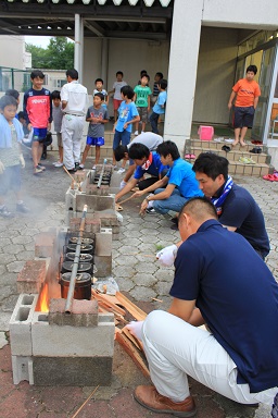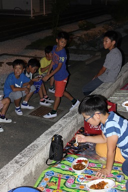 夏休みの本校のイベント飯盒炊さん、カレーパーティー&ナイトハイクを実施しました。 年々参加人数が増え、今年は昨年度より80名多い200人です。 先週行われた中瀬の夏祭りのように地域が顔を付け合わせる中でコミュニケーションをとり より親しくなり、協力体制を強くしていきます。 「人は心」、人情ある地域の中で、これからの学校は地域と共に有り、一体で子どもたちを育成し、地域と関わりながら学びを高めていく時代でもあります。豊里小は学校・家庭・地域が一体となりブランド化の計画の基に積極的に進めています。進められる地域です。 その一つとして、夏休みにカレーを作り皆で食します。 「食す」というのは人間が生きる原点、人は食べなければ生きていけない。食べる事は生きるための目的ではありませんが、無くてはならない生命の維持行為、それを皆で分担し作る場です。カレーに入る具を切り皆でつくり混ぜ合わせ、溶け合わせ美味しく食べるだけでも、賑やかに楽しい取り組みだと思います。各家庭の味や混じり合った味のカレーは、どれも美味しくてお腹もいっぱいになり満足します。味のコミュニケーションです。 午後3頃から準備が始まります。飯盒でつくるための釜作りです。火力調整と火をつけるまでの薪を大・中・小に準備します。5時から開会式、その後におやじの会(男性保護者)が中心で火をおこし、子どもたちと一緒に炊きます。カレーのルーは女性保護者を中心に家庭科室で作ります。 キャンプなどの体験の少ない家庭も多く、野外で皆で食事を作るのは大変ですが、又それはそれで楽しいものです。作り方の全てが大人にも子どもたちにも体験です。学びがあります。いろいろな会話も弾みもす。大人・先生でも友達が増えます。また、地震などの防災対策の一つとして、いざという時の仲間、炊き出しの経験いろいろなことがこれからの必要となるであろう共存の社会に向けて役に立つと考えます。 勿論、学校としても、夏の体験は学校で学んだ基礎知識を生かす場、友達・大人との積極的なコミュニケーションの場になったり、アイディアの基になったりする学びの場としてのふるさと体験として生かしていくことを考えています。これが子どものうちから育てる力で、大人になってから育てても遅いと思います。地域協力を得て机上の力だけで無く、豊里(ふるさと)の夏の楽しい思い出の中に人間の様々な力が育ちます。 地域消防団の方、学校応援団の方、おやじの会等々、皆で和が広がっていると感じてています。様々なご協力に感謝します。ありがとうございました。