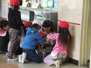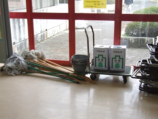 |   | 校長室の「先生あのね」今日は全校ワックスデー 掃除前に、床にある机・教卓・先生の机・テーブルなどなど廊下に移動が始まりました。児童は水拭きです。 児童の水拭きを見ていると、しっかりしていて楽しそう、力を入れて隅々まで、ほこりを拭き取っています。 床一面に邪魔なものがないので広々として、雑巾がけもスムーズです。思い切って雑巾がけも楽しいかもしれません。水拭きは冷たくて大変というイメージが、こんなに進んで一生懸命なら、毎日水拭きをしてもいいかも・・・。 とにかく年間お世話になった教室・特別教室に感謝して磨いています。 じっとしていると寒い日でしたが、終わったあとは体がぽかぽか温まりました。 その後 職員でワックスを掛けました。 掃除だって、結構な運動になります。