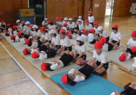 本日、1年生の新体力テストの補助をしました。反復横跳びや上体起こし、20mシャトルランなどの行い方を説明し、記録の計測をしました。初めての1年生の手を引いて実施場所に連れていき、声援も送るなど、微笑ましい光景でした。