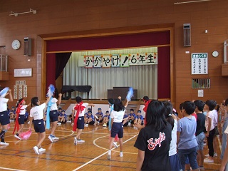 みんな今日は会を開いてくれて有り難う! 応援の声、熱気が伝わり盛り上がり、互いにエネルギーとなるいい会になりました。 互いの意欲の高まり 伝統を受け継ぐ互いのエネルギー交換 互いの学びのある力強い会となりました。 今、6年生はありがたい、とか、頑張るぞと思っていると思います。 応援は、選手のエネルギーになるのです。 6年生の高速縄跳びを見て、それだけで驚いている人もいるかもしれません。 5年生は、来年は俺たちがやる。決意をもっている人もいるでしょう。 長縄跳びは、豊里小の先輩達の伝統です。DNAです。 クラス全員が一丸となり、心一つにしていかなければできません。 できる子ができない子に文句言ったり否定していては伸びないのです。 そのような心の人は、チームは強くなれません。 これだけになるのには、業を磨く真剣さと技術をみんな体得してきたのです。 だれ一人と抜くのでなく、全員がやってきたのです。校長先生はそれだけで、もう心も体も育っていると感じ、満足しています。 よくここまで成長してきました。結果はその後につくおまけです。 飛ぶときの素早い入り跳び、縄から出る瞬間、かけ声と気合い。しかも、失敗しても直ぐに、そこから飛び始められる力が、練習を積んでいると感心しました。これがねぎ魂・豊里魂だと思います。伝統はもう引き継がれています。 2学期始まって間もなくは、今年は難しいと内心思っていましたが、ここに来て急に伸びました。 健闘を祈ります。