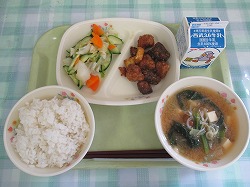 牛乳 ご飯 豚肉とレバーのごまだれ