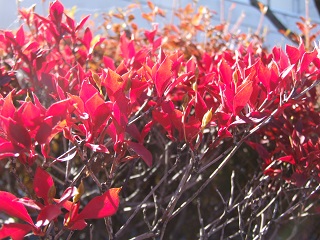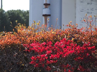 |   | 校長室の「先生あのね」晩秋・・・  校庭のドウダンツツジや花水木が秋の深まりを引き立てます。 太陽を透かしてみると、赤色が燃えているようにとても刺激的な美しさです。 晩秋です。冬に向かう寂しい季節ですが、落ち葉と最後の紅葉に趣を感じながら、さらに教室で音読している子どもたちの声と絡ませながら、今日の日の美しさを心に刻み込んでいます。