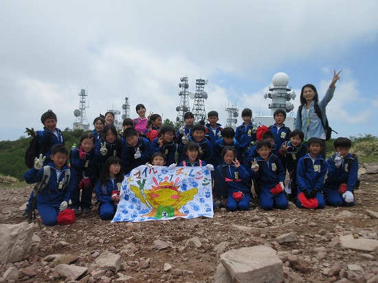 学級旗が頂上にはためく