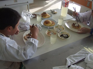 お楽しみ  2学期の努力を認め高める「がんばったね会」をおこないました。 そして、ご褒美と体験学習としてホットケーキ作りに挑戦しました。作り食べる楽しみだけでなく、道具の洗い方、食べ方・マナー、片付け方など、小学校生にとっては大切な勉強です。生活の基本です。 最後に、食事しながら先生との会話にハキハキと上手な応答でした。 これもコミュニケーション能力、これからの子どもたちには大事な力として、考えています。 活き活き活動する中に、段々と手際よく活動できるようになる進歩が確かに見られました。 +ホットケーキの味も、とっても美味しかったです。ごちそうさまでした。