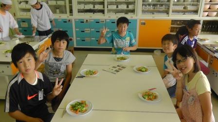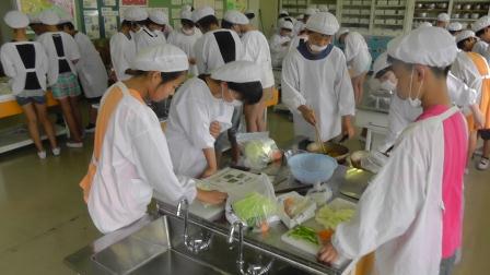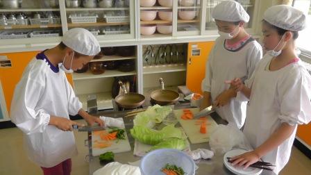 本日、3時間目に調理実習を行いました。今回は朝の時間に作れるものということで、テーマは時間短縮でした。始まると大変手際もよく、野菜を切ったり、いためたりと一人一人が自分のすべきことをしっかり行っていました。あっという間にできあがり、おいしくできたようでした。「これなら家でもできる。」「思っていたよりも簡単だった。」という声も聞こえました。ぜひ、ご家庭でも挑戦させてあげてください。食材の準備等で大変お世話になりました。ありがとうございました。