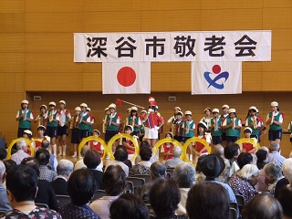豊里地区の敬老会が豊里公民会で開催されました。 56年生の鼓笛隊の演奏を披露しました。 今、学校で取り組んでいる鼓笛隊は昔からの伝統として受け継がれています。 軽快なリズム、響く太鼓やベルリラ、笛の音を聞くと、なぜか体が動きます。お互いに元気になります。 本校のブランド化計画の一つとして元気な学校・地域にするための一つとして参加しています。地域の皆様に喜んでもらえれば子どもたちの励みになります、地域の方にもその頑張りをみとめてもらい自慢になります。 今、様々な行事の中に練習時間等の確保は大変ですが頑張っています。 リングバトンがステージの上でバトンを一斉に上に投げ上げキャッチできるとると、それがみごとで、「わーすごい」と歓声と拍手が湧き上がりました。 揃っていて、本当に素敵でいいなぁと思いました。みんなが揃うというのはいいものです。 有り難うございました。 |