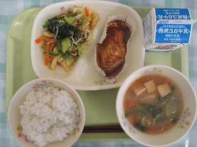 ごはん、牛乳、さばのねぎ味噌焼き、