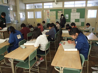 |   | 校長室の「先生あのね」頑張ってます。 本日、豊里小学校を会場に日本漢字能力検定を実施しました。各級の合格目指して、日頃から覚えてきた漢字や語彙力を試しました。 受験するみんなは、真剣です。 当初は、学力向上の意味を込め、地域の方や保護者も一緒に受験し学びを高めるという目的で実施していました。 最近は、児童のみになりました。また、学力向上では今年からCRTの検査を全学年で実施し 1年間の国・算の学びの定着をします。2学期後半から、全校で復習をしています。 そのため、来年度から漢字検定は年一回2月を予定しています。ご理解ください。 |