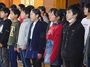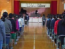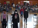 その6年生にお祝いの拍手をする在校生が今日は一緒です