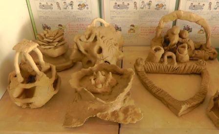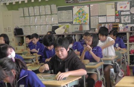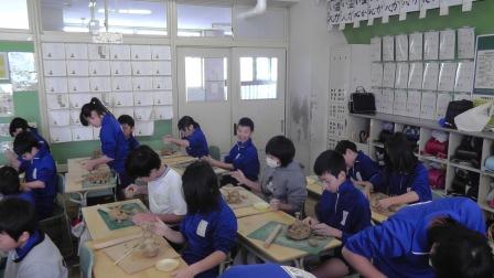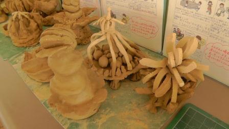 本日、図工の授業で粘土による作品作りをしました。「切った粘土の切り口から」という単元です。粘土をよく練ることから始まり、そのかたまりをテグスで切り分けたり、伸ばして板状にしたりしました。子どもたちは、変化に富んだ断面の形状や自由に形成できる特性を味わいながら、夢中になって取り組んでいました。決められた時間内に、全員がしっかりと作品を仕上げることもできました。