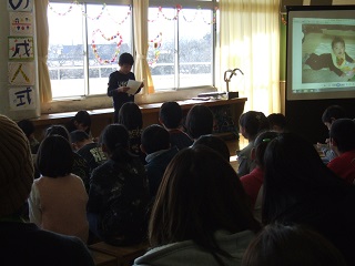 皆さんは何歳ですか。10歳 そうです。てんさいです。(天才) 今日は20歳の成人の半分を無事に過ごしこれからの10年をよりよく生きるためにをお祝いして 深谷市の偉人 夢と志、まごころと思いやりの精神の渋沢栄一翁の教え 市内の4年生が取り組む式を開催します。 夢や希望は 人を強く賢く豊かにします。人を正しい道に導きます。 こうありたい自分は、たとえ失敗しても、頑張る努力があります。前向き豊に輝きます。 後ろの保護者を見てください。みんな豊に輝いているでしょう。 今日は、夢・感謝・努力であるかと思いますが、仲間に話すことで思いを強めます。聞き合うことで、互いの事が理解できます。 この時間が豊かな時間になることと思います。 思い切って発表しましょう。