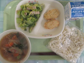 ポカポカの肉うどんの献立でした♪