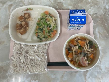 ★メニュー★ 五目うどん(地粉うどん) 牛乳 白玉団子のきな粉和え 春の野菜のごまマヨネーズサラダ | 12345次 |