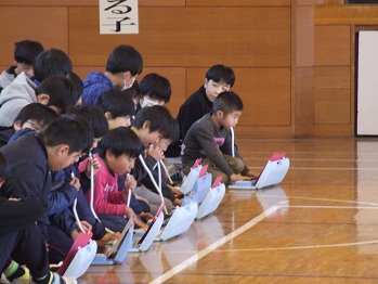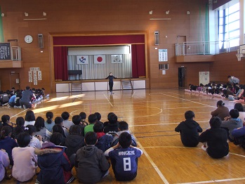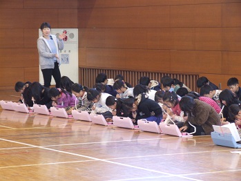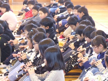 曲「喜びの歌」を全校で合奏しました。 それぞれの違ったパートの練習したことを合わせました。 1・2年生鍵盤ハーモニカ、3年生リコーダ、4年リコーダ、5年鍵盤ハーモニカ、6年は1年生のそばについて教えるです。 発達段階に応じてみんなで各パートを受け持ち協力して、一つの曲に仕上げます。 なぜかというと、これは、6年生の卒業式の入場の曲です。卒業を祝う喜びの中の入場曲です。 伝統として、先輩は、1年生に今まで手を取り教えてきました。私たちが育てた曲で後輩が、門出の入場を祝い演奏します。また、後輩は、先輩から学んだこと(音楽だけでなく、鼓笛、運動会、縦割り清掃、児童集会・・・。)を胸に秘めありがとうの感謝の気持ちを胸に演奏します。 豊里小は先輩と後輩のなかに触れ合いや学び合いがあります。その暖かな雰囲気の中に卒業します。 朝の体育館にリコーダーの音が響きチャペルの中にいるような気分になりました。みんなの真剣な姿勢、互いの音を聞き合い、音(心)を揃えてよく演奏できました。今日の練習を振り返り本番に向けてさらに磨きをかけます。 ありがとうございます。