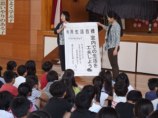 |   | 校長室の「先生あのね」 「神無月」 雨だからこそ出会えるものがある。 軒下の雨宿りで親切に出会う。そんな時もありました・・・。 傘がなく困っていたとき、先生が傘を貸してくれました・・・。 しかし、雨の日は交通事故、室内遊び等適切な過ごし方、注意を払わないと危険です。 工夫した過ごし方をしましょう。 今日は言葉の力について話しました。 「言葉は自分を規定する」全校の皆が音読や俳句制作を一生懸命やっています。 以前に比べて凄いです。皆がやるからより高まってきたのだと思います。 名文暗唱一つが、個人にとって凄い力になるわけはありませんが、 しかし、 全校が一生懸命に頑張ることは力になり、レベルアップになります。今では、豊里小は当然のように全校があんしょうします。 詩の内容自体に心を戒めたり、しっかり生きるような言葉もありますが、 それだけでなく、全校の気持心地よいようなリズム感、楽しい雰囲気になるのもあります。 そして、自分自身がしっかり覚えようと、次の月も頑張る気持にもなり、友達と頑張っている様子が分かります。このことが学習の頑張りに繋がると思います。私もその頑張りを褒めます。合格した子どもたちの嬉しい表情、満足げな顔、凄いね。よく覚えたね。この調子で来月もね。と、 今日は全校を褒めました。語彙を豊富にする言葉、心を豊かにする言、情報を伝える言葉、思考する言葉、言葉は自分の心をしっかりと自律させることに役立っていると思いました。 ご家庭でも、名文暗唱にご協力をお願いします。