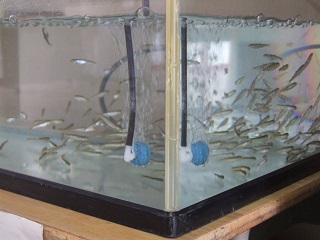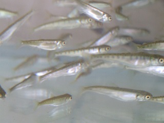 |   | 校長室の「先生あのね」1月20日大寒の日のサケ サケには寒さは関係ないのでしょう。 寒いほど、元気なのでしょうね。 餌も昨年度より多めに与え、まあまあです。 魚らしく綺麗な姿になっています。 水槽をじっと見ていても、その綺麗さと動きにあきない 2月には利根川に放流します。あと1か月間育てます。 みんなもしっかりと見て見守ってください。