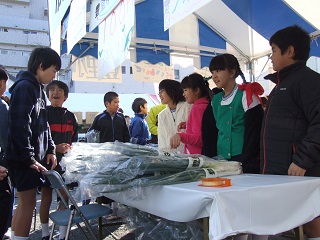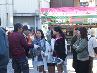 |   | 校長室の「先生あのね」自慢のねぎと鼓笛隊      今年も深谷市産業祭に5・6年生が参加しました。学校の全員で育てた新戒ねぎ(ねぎは深谷市特産の深谷ネギブランド)です。 主に、5年生が総合の時間を使って世話し販売まで受け持ちました。販売当日は、5年生が張り切って売り歩く声、元気な声に感心しました。 お客様への適切な会話や対応は、学校以上の効果が出ているやりとりでした。 そして、鼓笛隊は伝統ある本校自慢の組織です。 産業祭ということもあり、いつもと違う風景と観客の方々の前での演奏は、緊張こそ隠せませんでしたが、 普段からの自己の努力と豊里小全体の誇りが光って見えました。 豊里小のプラカードを先頭に、どの子どもたちも精一杯頑張りました。沿道の人たちも、太鼓の音、バトンリングの華やかな振り、そして、リズムに心ワクワクさせながら聴いてくださったと思います。 保護者の皆様の送り迎えを始め、本校の教育活動への温かいご支援のお陰で、子どもたちも他の学校にない自信となる活動ができました。 私は、子どもたちの素晴らしい自信となる活動のシステム(先輩と後輩の子どもたち同士で教え合う組織)に感心しています。小規模校の強みと捉えています。 今日は、豊里という地域一体の活動が、子どもたちの思い出、そして、誇りとなる大きな成果でした。 事故なく無事に終わり有り難うございました。
