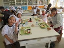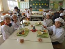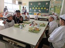 食欲もりもり 12月14日(木) 12時 家庭科室2学期も残すところあと二週間です今日は2年生が楽しみにしていたバイキング給食です家庭室に場所を移し校長先生や村田先生、久保先生と一緒にバイキング給食を楽しみました栄養士さん、調理員さん朝早くから準備をしていただき本当にありがとうございました |  |