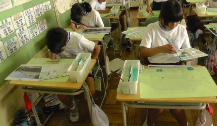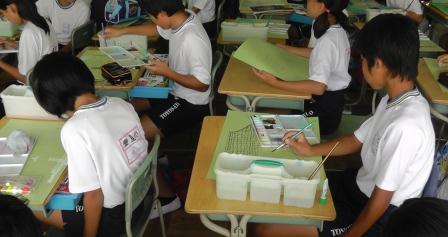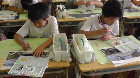 本日、図工の時間に写生会で描いた絵の続きに取り組みました。多くの児童が色塗りの段階に入り、慎重に描いていました。色の濃淡など工夫している児童もおり、仕上がりが楽しみです。
