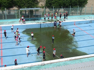 |   | 校長室の「先生あのね」| 2017/05/23 | 今年もしっかりプール清掃 | | by:校長 |