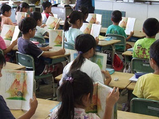 |   | 校長室の「先生あのね」授業の一場面 音読