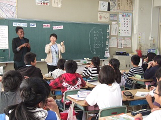|   | 校長室の「先生あのね」子どもたち和やかに 本日は、豊里中学校の英語担当の先生が、6年生の授業に参加してくださいました。 小中連携の一環として毎年行っています。 中学校の先生ということで、最初は緊張気味でしたが、先生の楽しい指導で、教室に笑い声が・・・。 私も見ていて、愉快になってきました。それでいて、目標はしっかり英語力の向上の目標と計画をもっています。 中学は、教科指導で一段とレベルアップしていきますが、分かりやすく楽しい授業でした。 来年の中学校への授業の不安も少し取り除かれました。