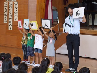 |   | 校長室の「先生あのね」色で覚える危険なこと・・・ 休み中の生徒指導について、分かりやすく話がありました。生徒指導主任より 赤色=火に関する注意(マッチ、ライター危ない) 水色=水に関する注意(川、海、貯水池は危険) 黄色=車に関する注意(交通事故) 黒色=人に関する注意(不審者、携帯・スマホなど) 白色=全て命に関する注意を頂きました。 教室で担任より詳しく説明を聞き約束を守り楽しい充実した夏休みにしましょう。 元気な登校を待ってます。