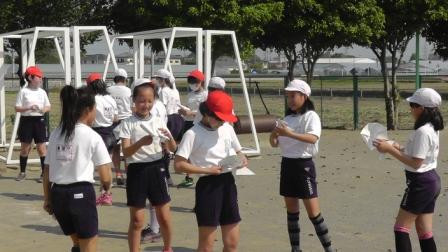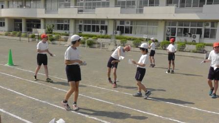 ボール投げは埼玉県の課題でもあり、本校でも差の大きな種目です。今日はフォームの確認と腕の振り方で終了となりました。その練習の際に、紙鉄砲を使用しました。しっかりと頭の後ろから腕を降らないと大きな音が出ないので、どの子も大きな音を出そうと必死に腕を振っていました。だんだんと音が出始め、授業が終わるころには、どの子も大きな音が出せていました。