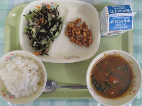 大豆のシャリシャリ揚げ、ツナとひじきのサラダ