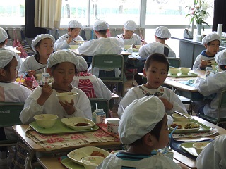 |   | 校長室の「先生あのね」給食がスタートしました  エネルギーの元、給食、(人間は他の命を頂き食べなくては生きていけません。) 本日より普通日課6時間として子どもたちも授業が開始しています。 そして、今日から給食スタートです。 一生懸命活動すればするほど美味しくなります。 また、給食はお腹を満たすだけではなく、人として、健康な体作りとしての栄養知識、食の工夫を学ぶ場であったり、楽しく過ごす場であったり、配膳・片付け等の協力する場、マナーを学ぶ場であったりと食育としての意味があります。 2年生も昨年より準備が早く、上手に配膳して食べていました。食べ方一つ見ても成長の様子が分かりました。アレルギー対応も入れた、給食事故のないように、これから1年間安全衛生にも気を付けますので、よろしくお願いします。