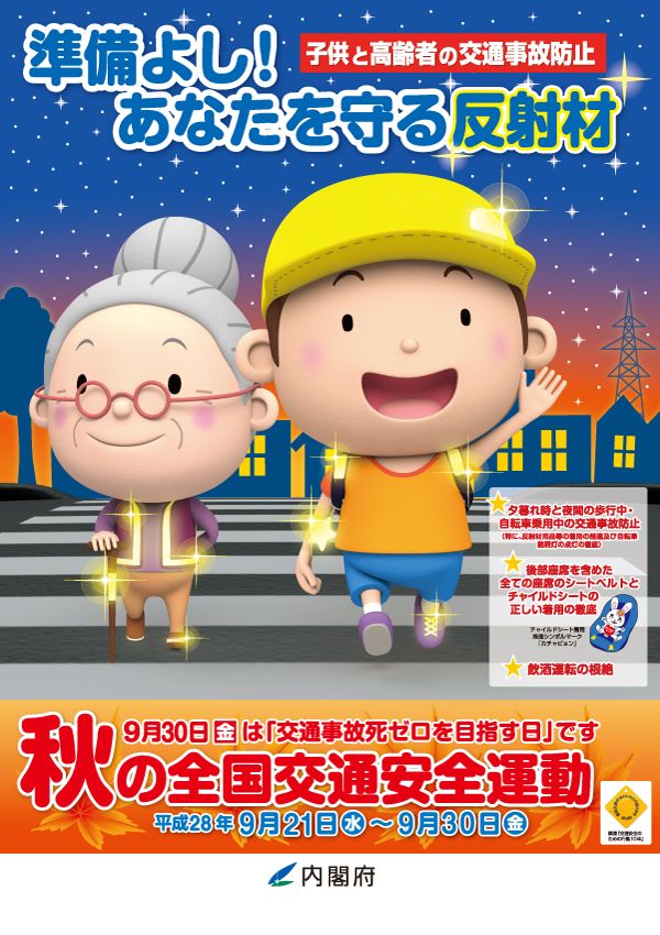 明日から連休です。気の緩みにきをつけて 全国秋の交通安全週間が展開されています。 気をつけるのはこのときだけではありませんが 事故は気をつければ防げる事故がほとんどです。 安全意識を持ち、互いが十分気をつけていきたいと思います。 よろしくお願いします。 交通ルールを守る。 自転車のヘルメット着用