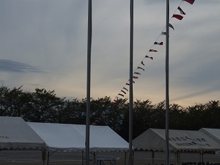 校庭に白線が引かれました、ご来賓用の皆様を迎えるテント、本部テント、万国旗が上手に張られました。いよいよ明日本番 計画どうり準備を、今日午後から高学年児童の手伝いと職員で会場を設営しました。 天候がやや心配ですが・・・、 これを書きながらも待ち遠しくて、息が上がっています。やりたいです。 子どもたちに、演技の最終指導としてに先生方も気が入っていました。 最高の演技・応援・走りができますように・・・。 今朝の地域の方の声、 鼓笛隊は地域の方も楽しみにしています。豊里小の先輩が、風の流れで聞こえてくる鼓笛の音から、段々しっくりした音になってきましたね。と褒められました。皆一生懸命ですから・・・。 ありがとうございます。 保護者・地域の皆様、明日はご協力よろしくお願いします。 |