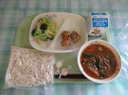 牛乳 カレーうどん ちくわの磯辺揚げ 温野菜 チーズ