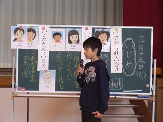 |   | 校長室の「先生あのね」見てるだけでも・・・  前期・後期と全ての学校で必ず実施しする大切な学習です。 朝は感謝の会がありました。それぞれ作文に想いか綴られ、しっかりできました。 感謝がしっかりできる子、感謝の心の表わせる子は人の心の痛みが分かる心を持っています。 豊里小の子どもたちは、みんないい子達です。 しかし、友達に対して言い過ぎたり、ふざけてしまったり、冷やかしたり、暴力を振るったりと、自分のことになると、ついつい自分が分からなくなってしまう子もいます。それがエスカレートしていじめにもつながります。 今日は人権教室です。紙芝居orDVDを聞いて、振り返りの学習をしました。 いじめを見ているだけでも、いじめられている子は辛い思いをしています。 なかなか難しいですか、勇気も必要なことも理解しました。 ちょっとのからかいから、大変心は傷つく場面もあることや 価値観の違いや劣等感、優越感からのいじめもあります。 みんなの意見交換をして、日常生活の出来事の中から考えました。 最後に、相手の気持ちを考て行動する子。いじめに対して正しい自分を出せる子を目指そうと確認して終わりました。 人権擁護委員の皆様ありがとうございました。