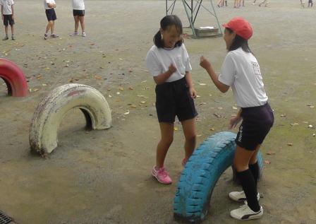 本日、縦割り業間遊びが行われました。雨の心配もありましたが、無事に校庭で行うことができ、1年生から6年生まで元気に走り回っていました。ドッジボールや鬼ごっこ、タイヤとびじゃんけんなど縦割り班で力を合わせながら、楽しむことができたようです。開始や終了時には、6年生が中心となって下級生をまとめている姿も見られ、感心しました。