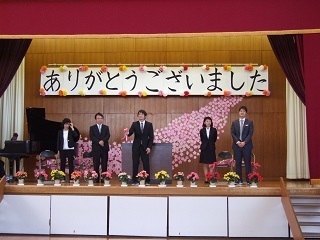 本日5時間目、離任式、昨年度お世話になた先生方とのお別れの式でした。 ご多用の中お別れの挨拶に来てくださいました。元担任の先生方に会うと、子どもたちは、懐かしの歓声、嬉しい歓声をあげてお迎えしてくれました。その姿に豊里の子どもたちの素直さ、従順さを強く感じます。可愛い子どもたちです。1年生も知らない先生ですが、お話をしっかり聞くことができ立派でした。 先生方も、家庭訪問がある先生もいましたがご都合を付けてくださいました。有り難うございます。 皆、同じ時を過ごした仲間、同じ給食を食べた仲間、繋がりあえる時間、楽しかった日々がありました。大変だ他時もありました。様々な思いが子どもたちの胸に蘇っていると思います。作文を読みながらも、先生との思い出し感極まって泣き出してしまう子もいました。思わずもらい泣き、いい姿を見ました。 1年間、互いの出会いが自分を磨き作り上げてきたと思います。 成長したか、しなかったかは自分が決めることですが、 自分の過ごしてきた道に感謝する事ができることは、 互いの存在を認め合うことです。 認められることはとても心地よいものです。 だから今日のお別れの式、出会いに感謝したいと思います。
