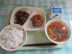 牛乳 ごはん 和風ハンバーグ 大豆の磯煮 沢煮椀