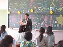 4年生は図工室で二分の一成人式