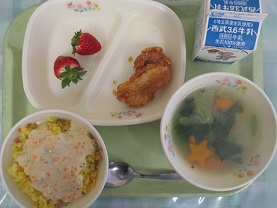 鶏肉のレモン煮、コンソメスープ、いちご
