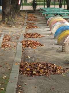 |   | 校長室の「先生あのね」 今、必死に落ち葉を 9月に入り、豊里小では昨年より幾分早く落ち葉が毎日たくさん落ちています。運動会に向けて授業の他に、清掃・環境整備に力を入れています。自然の恵みの落ち葉ですが、毎日戦っています。近隣の畑等へご迷惑をかけ済みません。春にあれほど美しい満開の桜に目を奪われました。落ち葉が綺麗という場合ではなく、学校はここが正念場と、運動会の練習と授業のなか必死に作業を進めています。 きっともう少し涼しくなると、残った葉の紅葉が楽しめるのかなあ。