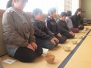 静寂の中で可愛らしいウグイスのお菓子をいただきます