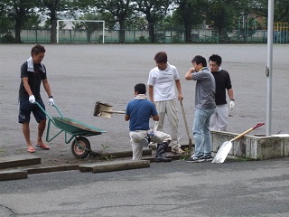 心配されていた雨も大丈夫です。それ以上に晴れでもなく雨でもなく環境整備作業には曇りという最高のコンディションでした。 各地区ごとに作業が行われます。室内、外回りの除草等々。側溝では蓋や泥の運搬があるため男性の保護者が進んで活動してくださいました。 地域でチームとなり作業を進める中に、情報交換、子どもの様子、学校の事、世間話等があり互いに参考になったこともあります。私も数名に、アドバイスを頂き大変よかったです。また、話しながら声かけ、かけ声は体の力を抜く(ぎっくり腰)の予防によいそうです。なんと言っても作業は大変なのですから話をしながらは楽しいかもしれません。それに、注意し合えます。 いつも思いますが人数は本当に有り難いです。力を合わせると、一人ではできないことを短時間で仕上げます。気持ちもよいです。さらに、道具が準備され、道具の有り難さをつくづく感じます。その作業に適した道具、人間が考え出した智恵、お金もかかりますがこのお陰で楽に、スムーズに、無駄なく、効率的にできます。大切に使わせていただき道具にもお礼を言い綺麗にして返しました。今年も保護者の方々の貴重な汗に感謝の2時間でした。事故なく終わり有り難うございました。 子どもたちも夏休みも残り一週間です。大切に、また、2学期開始のコンディションを整えながら有意義に過ごしてください。