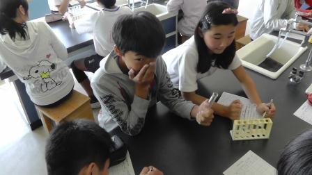 現在、理科の授業では「水溶液」の単元を学習しています。さまざまな水溶液の性質を調べることが主なねらいとなっており、本日はにおいや見た様子で違いを確認しました。強いにおいのする水溶液も含まれており、子どもたちは非常に驚いていました。今後、多くの実験を行う単元なので、安全に気をつけて取り組んでいきたいと思います。