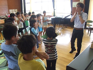 夏休み練習3日目 今日も4年生6年生の子どもたちは朝練習に参加しています。 毎年、このように夏休みの終了から2学期開始までの期間に練習 を続けています。 今日は音楽会に向け指導者を要請して見ていただき、指導を頂きました。 さすが子どもたちを声を伸ばすように仕向けてくださいました。指導のポイントを示してくださり、発声練習から今後の課題を指摘し指導方法を示していただきました。 子どもたち、担当もこれからの音楽会に向けて心を一つにし、歌声を一つにまとめていく覚悟をさらに固めました。歌声の美しさ、発声という技を高めながら、心も高めることが大事です。まだまだ始まったばかり、継続を応援します。