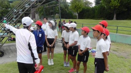 本日、親善運動会のリレーに出場する選手が、仙元山陸上競技場で練習を行ってきました。実際に走るコースやバトンゾーンなどの確認をした後、男女2本ずつ走ってきました。他校の児童もたくさんいましたので、その様子を見てよい刺激を受けたようです。本番まで残りわずかです。少しでも記録の向上を目指し、頑張ってほしいと思います。