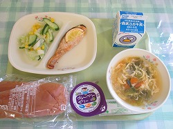 三色サラダ 夏風スープ ブルーベリーゼリー