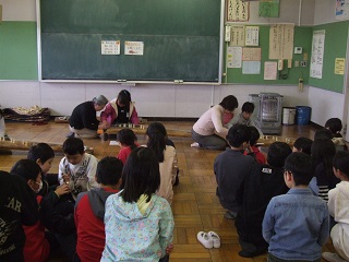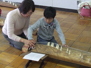 |   | 校長室の「先生あのね」うっとり 聴きほれました    5年生が音楽の学習でお琴の体験学習をしました。 お正月によく流れている曲です。 「春の海」 生演奏で、教室の床ですが、そのしらべは天にも昇る心地よい音色の音楽でした。 いつもと違うゆったりとした時間が流れていきました。時間があっという間に過ぎた感じです。 子どもたちはとても集中していました。 講師の先生の琴の弦を弾く手の動き、鋭さ滑らかさ、日本古来の楽器として日本でよかったなぁという感じがしました。琴とは知っておくべき価値があるもの。 児童の中には、初めて見たり聴いたりした人もいると思います。 さらに、一人一人が先生について「さくら」を演奏する体験をしました。有意義時間でした。 指導してくださる地域ボランティアの皆様に深く感謝します。 |